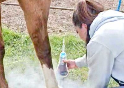 Additionally, high-pressure cold treatments allow for deeper penetration into the skin, activating deep receptors like the Pacinian and Ruffini corpuscles, which significantly reduce pain and inflammation. Moreover, shorter treatment times and ergonomic designs make it easier and more practical to treat any area of the horse compared to continuously applying ice packs or using ice boots.