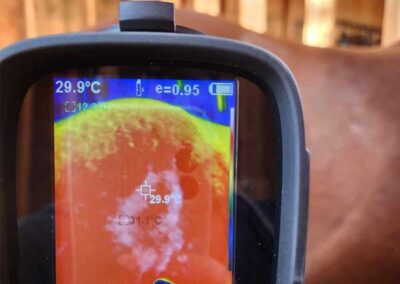 Cryotherapy emits CO2 gas at -108°F (-78°C) under high pressure of 52 bar (756 psi), cooling the skin surface temperature of the affected area to 39.2°F (4°C) in just 30 seconds. This triggers a series of physiological adaptations that effectively reduce pain and inflammation while increasing blood flow in the targeted region. Cryotherapy enhances the body’s natural recovery processes, enabling the horse to quickly resume its regular training and activities.